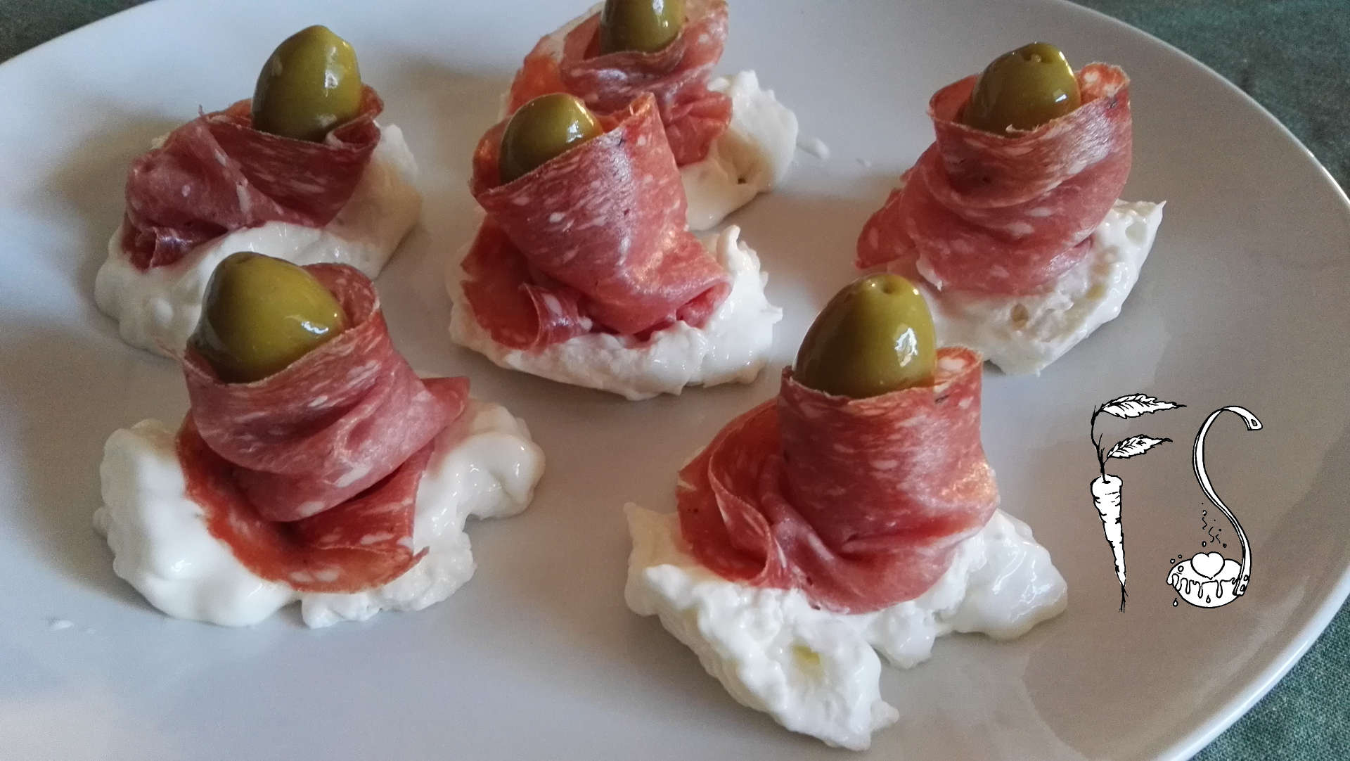 Rose di prosciutto squacquerone e olive di Cerignola Rose di golfetta squacquerone e olive di Cerignola